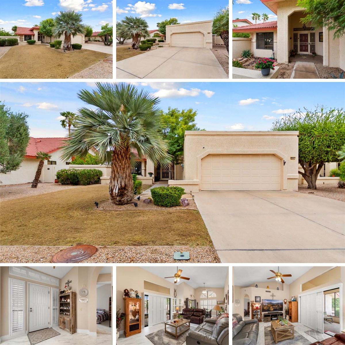 private backyard with block wall and mature landscaping with Lemon & Grapefruit trees. Inside features include neutral tile and carpet,